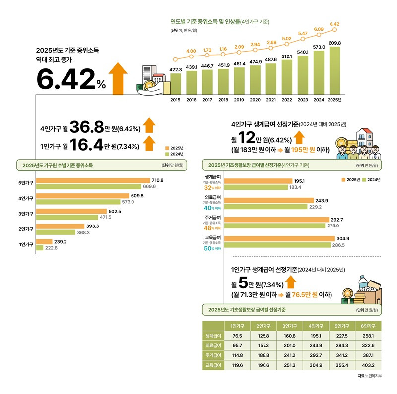 보건복지부는 2024년 8월, 2025년도 적용 기준 중위소득을 공식 고시했습니다.